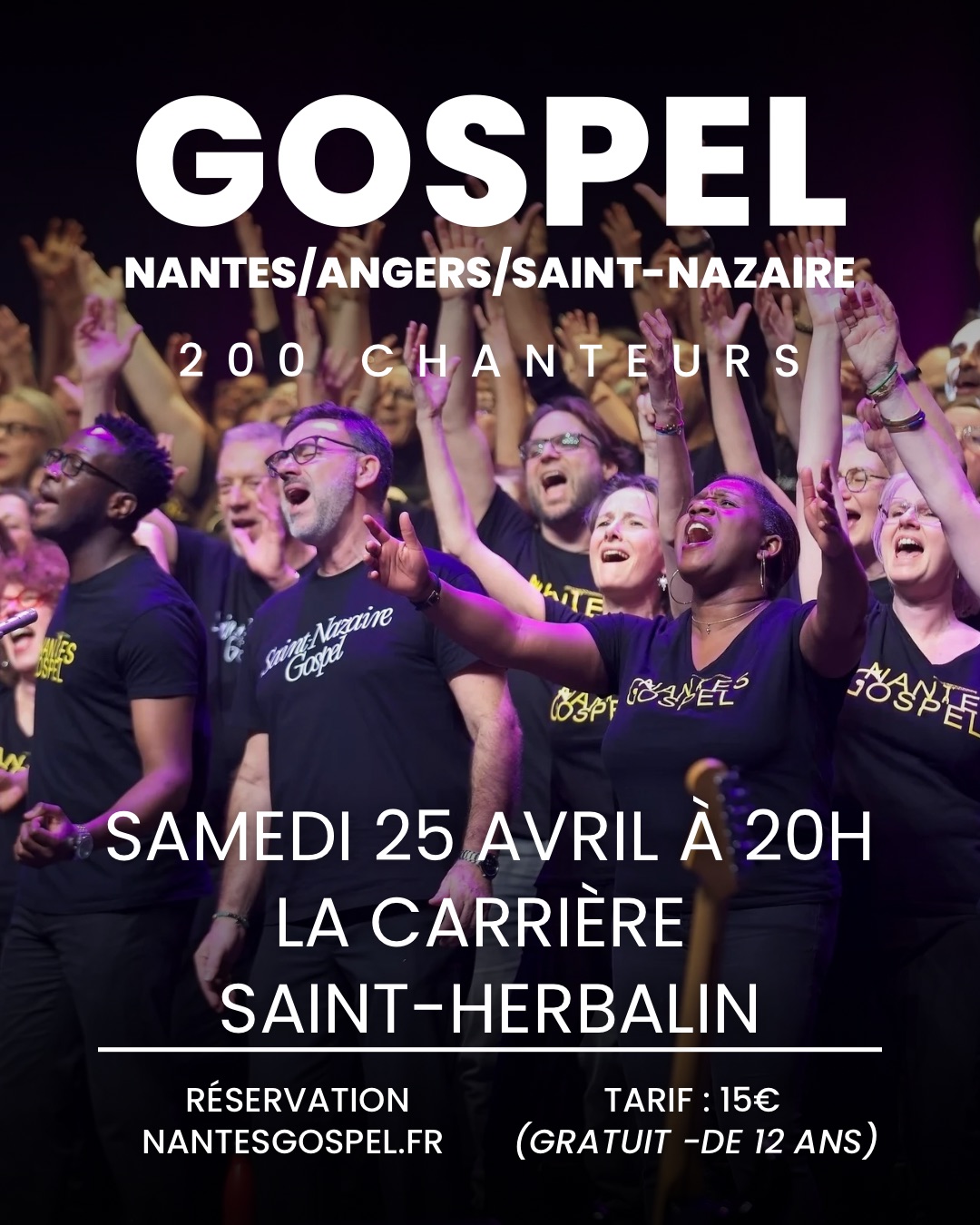 Venez vibrer lors d’un concert exceptionnel avec les chorales Angers Gospel, Nantes Gospel et Saint-Nazaire Gospel. 150 choristes et 5 musiciens seront présents sur scène ! La direction du spectacle se fera par Patrice Alcindor.