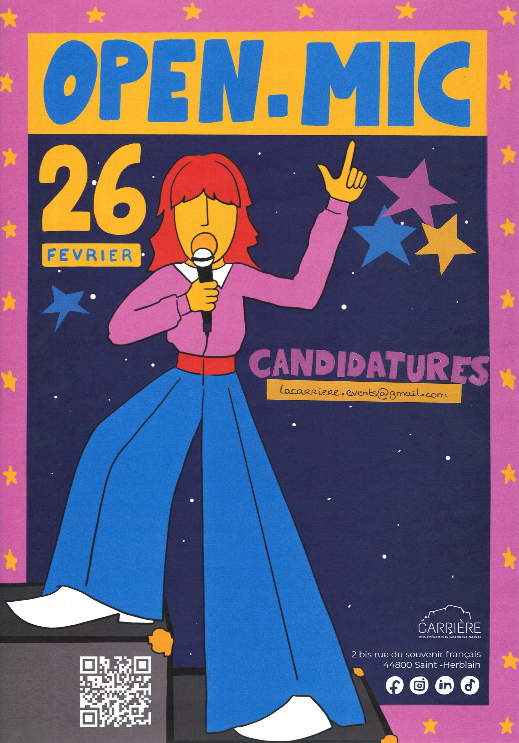 👉 Les candidatures sont ouvertes jusqu’au 20 mars à l’adresse : openmic.lacarriere@gmail.com